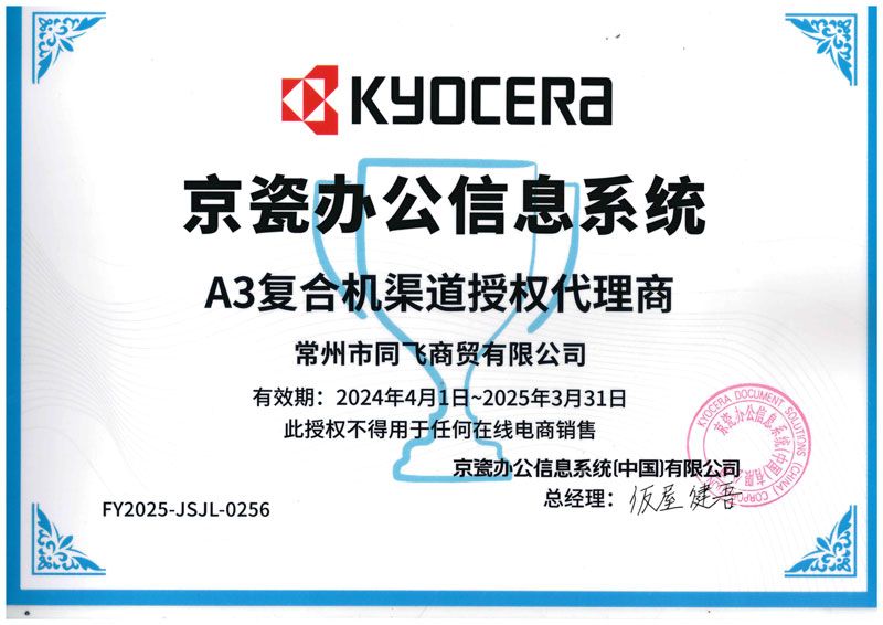 京瓷A3代理證書